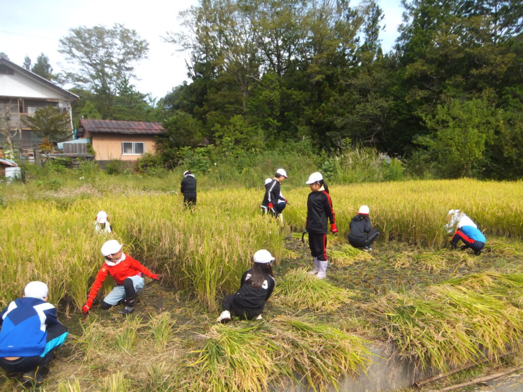 稲刈りがありました 9月 24, 2025 最終更新日時 : 9月 24, 2025 浪合小学校 9月22日(月)秋晴れの中、地域ボランティアさん、保護者の皆様にご協力いただき、5年生の稲刈りが行われました。午前中いっぱいかかりましたが、子ども達は一生懸命、楽しみながら稲刈りをすることができました。