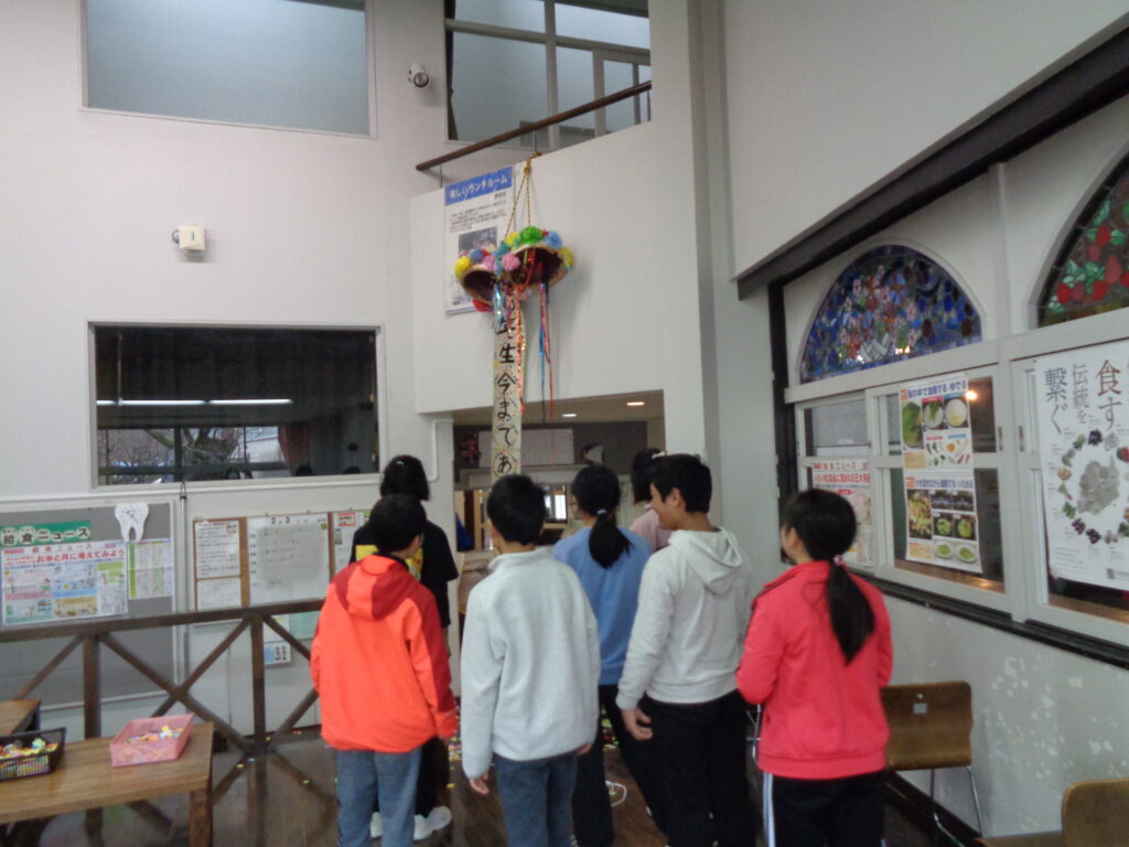 3月3日(火)ランチルームで6年生を送る会が行われました。6年生への感謝の気持ちを表そうと在校生は手作りのプレゼントを渡したり、クイズを発表したり、各学年の発表をがんばりました。最後に6年生は感謝の気持ちを込めてダンスを発表しました。全員そろってみんな笑顔で参加し、心温まる会になりました。残り少ない日々ですが、1日1日を大切に過ごして卒業式を迎えましょう。